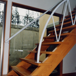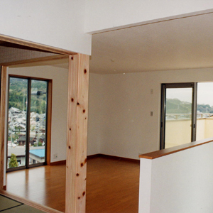 中庭を望みながら2Fへ上るように大きなFIX窓を